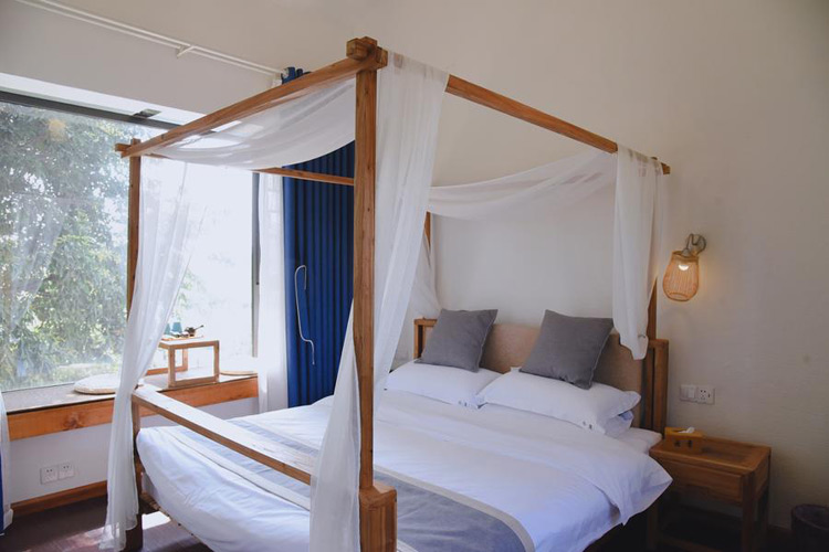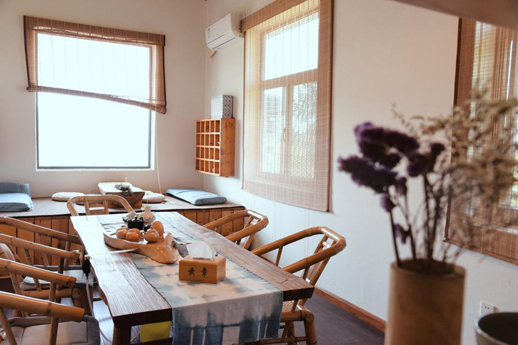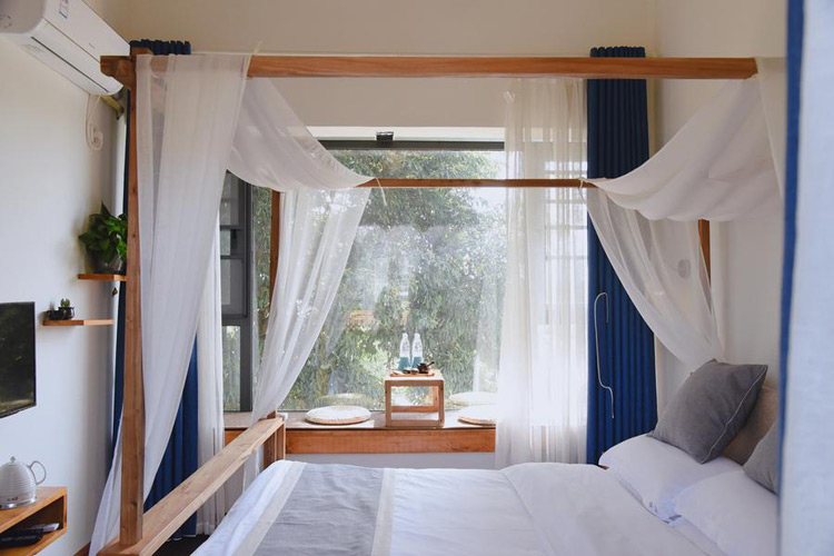 云章乡居民宿客栈位于蒲江县甘溪镇明月村内,四周茶田、松林、竹林、果园环绕,安静又独立。这里是以书画为主题,所以就用书画的别称“云章”命名,有书画家定时来此做沙龙活动,也有音乐、茶会、插花、陶艺、草木染、诗歌......各种雅集,不同感受。云章的建筑还原了川西林盘的建筑特点,青瓦白墙,宽大的院子,有着无比宽阔的视野。民宿共有客房12间,每一个房间舒适而风格不同,超大的落地窗,把阳光引进每一个房间,房间外面是私享花园和露台。有做饭的大厨房,可以为自己爱的人用最新鲜的有机食材做一顿可口的饭菜。也有专门的茶室、书画室和多功能室等公共空间,24小时管家服务。云章的宗旨就是为来到这里的客人提供像家一样自由又舒适的空间,看似简约,但不失品质,让大家能深度感受新乡村生活。